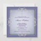 Elégante lavande violette damassé avec la bordure florale et la croix blanche nacrée première invitation à la communion sainte fille.
