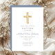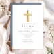 Invitation Croix religieuse bleu Dusty Script garçon Baptême