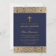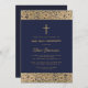 Invitation Croix Rose d'or florale Marine bleu Première commu