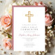 Invitation Croix rose moderne Fille religieuse Première commu