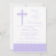 Commencez votre Première Sainte Communion avec élégance avec notre belle croix de la Première Sainte Communion invitations pour les filles. L'invitation présente une élégante croix violette de lavande sur un arrière - plan blanc immaculé avec une bordure en dentelle "imprimée". Facile à customiser, il suffit d'ajouter vos informations d'événement et vous êtes prêt à partir.