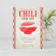 Cette invitation de partie de concours de piment d'amusement vient orné avec l'arrière - plan checkered rouge de nappe et un pot de cuisson à la vapeur de piment. Perfectionnez pour des fêtes d'anniversaire, des parties de chance de pot, des réunions de famille, le quatrième des barbecues de juillet et la partie de barbecue d'arrière cour. Conception unique de haute qualité.