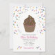 Invitation de fête personnalisée de cupcake au chocolat avec pépites arc-en-ciel. En raison des différences dans les paramètres d'écran et de périphérique, les couleurs imprimées peuvent varier légèrement de ce que vous voyez sur l'écran. Merci de visiter Walt & Ellie