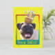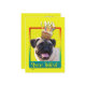 Invite your guests with this whimsical Pug Dog Greeting Card. With a cupcake balanced on it's head, this design is sure to bring a smile and giggles! BTW, This design has several versions, with different background colours. There is also a Happy Birthday version.