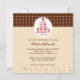 Cuisine et moderne invitation à la douche nuptiale. Comprend des cupcakes sur un stand avec des arroses au fond. motif Pois sur le bar supérieur. Couleurs Brown et crème avec accents rose et blanc.