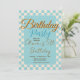 Invitation Custom Pastel Blue Checkered Birthday Party