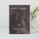 A stylish option for modern couples, this customizable chic black Save the Date invitation features elegant calligraphy paired with refined serif and modern sans fonts. The photo background on the front creates instant visual impact, while the back design includes a customizable monogram, photo, and event details, adding a refined and sophisticated finishing touch.