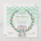 Invitation Cute bébé Eléphant Wreath Floral Chevron Motif