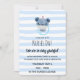 Infirmière de jour l'invitation d'appréciation de l'infirmière avec une jolie illustration d'un ours bleu portant un casquette d'infirmières avec un petit coeur dessus. Porte aussi un masque et a un stéthescope bleu aussi. Placé sur un arrière - plan rayé bleu clair et blanc.