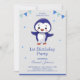 Invitation Cute Blue Penguin 1ère fête d'anniversaire