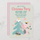Cette invitation de fête de Noël personnalisée présente une illustration de dessin animé de style boho féminin. Une jolie licorne rose orne son sapin de Noël sous des flocons de neige qui tombent. L'arrière - plan est une couleur verte sage douce.