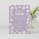 Elle est deux sauvages ! Célébrez le 2ème anniversaire de votre petit avec notre adorable invitation de fleur de marguerite lavande violette! Doté d'une jolie décoration d'arc-en-ciel de couleur terre, l'un avec une fleur marguerrière en forme de coeur, cet invitation est parfait pour une fête sauvage et amusante avec des amis et la famille.
