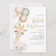 Famille Invitation et amis à votre baby shower virtuel avec cette adorable invitation de baby shower à thème safari. Il présente un joli éléphant et une girafe avec des masques avec ballons et des accents de parties scintillant d'or. Personnalisez en ajoutant vos propres détails.