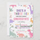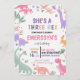Celebrate your little girl’s third birthday with this adorable dinosaur-themed invitation! Featuring soft pastel colors, cute girl dinos, and playful hand-drawn illustrations, this “She’s a Three Rex” design is perfect for a fun and joyful kids birthday party.