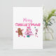 Celebrate the holiday season with this adorable pink Merry Christmas design featuring a smiling gingerbread cookie, a festive Christmas tree with a bow, and a sweet candy cane. Perfect for Christmas cards, stickers, mugs, T-shirts, and festive gifts! Bring a touch of pink joy and holiday sparkle to your Christmas collection.