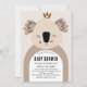 This sweet koala illustration was created to feel soft, joyful, and a little magical. With warm neutral tones, rounded shapes, and a tiny crown detail, it brings a cozy yet special feeling to a baby shower—perfect for celebrating a little one in a calm, modern way.