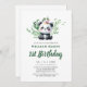 Cute Panda Ours Aquarelle Verdure 1er Anniversaire Invitation