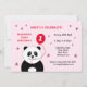 Cette mignonne invitation de fête de 1er anniversaire a un panda souriant avec un ballon rouge de 1er anniversaire. En haut, le texte éditable est "Aidez-nous à célébrer !" Le texte pour "Le premier anniversaire de Madison" est également modifiable. L'arrière - plan de la carte est rose pâle, avec des étoiles parsemées de rouge, blanc et bleu. Le dos de la carte a un motif à pois en rouge sur rose, et il y a une étoile au centre.