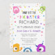 Invitation Cute Petit Monstre Pois à thème Anniversaire
