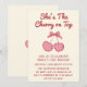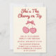 Invitation Cute Pink Bow Cherry on Top First Birthday