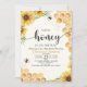 Lindo diseño para tu baby shower de niña o niño con una Hermosa Tematica de Flores de Girasol y abejas con la Frase " A LITTLE HONEY IS ON THE WAY". con linda tipografia en color negro y un fondo amarillo claro es ideal para recibir a esa trozo de miel que viene en camino!. Personalice esta invitación para baby shower para niña o niño añadiendo sus propios detalles de evento, y no olvide consultar la coleccion para elementos complementarios para tu fiesta de baby shower.