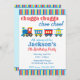 Celebrate your train lover's birthday with this fun and colorful train invitation. The card features a cute train engine with 2 train cars and a caboose.