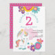 Invitation Cute Unicorn rose Turquoise fille 2e fête d'annive