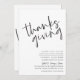 Cet Invitation minimaliste Monochrome Thanksgiving est parfait pour un dîner, une fête ou une fête d'action de grâces. Cet invitation inclut les mots "Thanksgiving" en caractères scriptés en noir et blanc.
