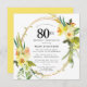De belles compositions florales printanières ornent des jonquilles jaunes et blanches décorant un cadre rustique. La verdure et les tiges de jonquilles assorties lui confèrent une ambiance boho moderne. Le dos de l'invitation du 80e anniversaire est jaune ensoleillé et lumineux. Un choix parfait pour une fête d'anniversaire au printemps.
