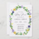 C'est une invitation au baby shower sucré et rustique. La conception comprend une couronne faite de divers fleurs sauvages printaniers, dont des jonquilles jaunes, des pansies violettes, des trèfles, de la lavande, des pois doux, des pissenlits, des tulipes et des fougères et des lierres. Il comprend également quelques coccinelles et une douce libellule et un espace pour plus de détails ou un poème à l'arrière ! Il serait parfait pour un événement décontracté de printemps ou d'été. Voir la collection complète des éléments de coordination ici : https://www.zazzle.com/collections/rustic_daffodils_and_spring_wildflowers_collection-119538053422552785?rf=238422957014002417