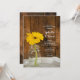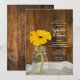 Invitez les invités à célébrer les jeunes mariés le matin après leur cérémonie de mariage avec le brunch décontracté et rustique Yellow Daisy dans le carton d'invitation de mariage Country Post Mariage dans un pot Mason. Cette invitation de mariage après le repas ou le déjeuner de style ranch personnalisée, décontractée mais élégante, comporte une photographie florale charmante d'un pot de conserve en verre rempli d'une fleur de marguerite jaune et d'un fond de bois de grange brun patiné. Inspiration ou idée parfaite pour un événement de célébration de fête champêtre informel. Disponible sous forme d'invitation imprimée pour envoi postal ou en téléchargement numérique pour un partage facile en ligne.
