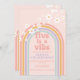Retro inspiré Five est une invitation Vibe 5ème anniversaire avec hippie style pastel arc-en-ciel, et marguerites