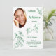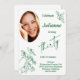 Cette invitation minimaliste de trentième anniversaire en vert avec mes propres dessins de marguerite peut être personnalisée avec une photo et nom, heure, date, emplacement et instructions RSVP au dos. Ce design est simple et moderne. L'invitation fait partie d'une gamme coordonnée de fête de marguerite stationnaire et de fournitures pour ce trentième anniversaire et d'autres anniversaires âgés.