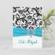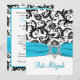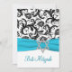 Invitation Damas noir et blanc avec ruban Aqua FAUX