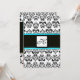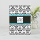 Invitation DAMASK MONOGRAM, noir et blanc, turquase bleue
