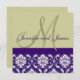 Invitation Damassé de pourpre de Taupe de monogramme de