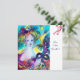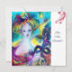 Peinture aquarelle colorée, fantaisiste et vibrante dans des couleurs rouge vif, rose, fuchsia, bleu, violet, jaune avec feuille d'or, d'argent et couleurs iridescentes inspirées du Carnaval de Venise. .