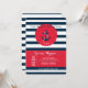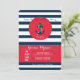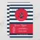 Une invitation sur le thème nautique avec des rayures bleu marine et blanches. Un panneau rouge vif contient les détails de votre fête et un autocollant circulaire rouge présente une ancre. (<a href='http://www.freepik.com/free-vector/birthday-card-with-nautical-elements_886557.htm'>Conçu par Freepik</a>). <br/><br/>La carte est facile à personnaliser avec votre libellé, police, couleur de police, options de forme de papier et choix parmi six types de papier.<br/><br/>Pas exactement ce que vous cherchez ? Tous nos produits peuvent être conçus sur mesure pour répondre à vos besoins sans frais supplémentaires.<br/><br/>Contactez-nous simplement à heartfelthelper@gmail.com.<br/><br/>Produits de coordination disponibles : Demandez-nous !