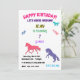Invitation d'anniversaire "Let's Horse Around" avec nom personnalisé et âge célébrant le plaisir, les jeux, gâteaux et glaces.