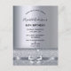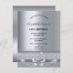 Une invitation moderne, élégante et glamour pour la fête d'anniversaire des 16 ans d'une jeune fille. Un fond métallisé argenté faux avec un nœud, un ruban et des étincelles argentés élégants. Le nom est écrit avec une police de caractères manuscrite noire moderne. Des modèles pour les détails de votre fête.