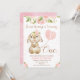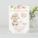 Invitation d'anniversaire 1 an Lapin Rose Doré Floral