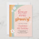 Cette invitation d'anniversaire pour fille présente un design amusant dans le style des années 1970 avec le texte "4 ever groovy". Le design est accentué de couleurs bohèmes, de marguerites blanches et d'une police rétro. Ce design est parfait pour une fille qui fête ses 4 ans.