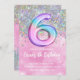 Invitation fête d'anniversaire à paillettes modèle papier alu arc-en-ciel 6 ans