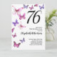 Cette jolie et fantaisiste invitation d'anniversaire 76 ans est parfaite pour une belle fête et donnera un ton amusant et festif. Ce design présente des papillons roses et violets, et est un choix féminin agréable pour un événement spécial pour célébrer un anniversaire marquant. Personnalisez pour votre propre année d'anniversaire, et recherchez "76" dans ma boutique pour voir les designs coordonnés.
