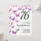 Invitation d'anniversaire 76 ans papillon en rose/