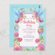 Carton d'invitation d'anniversaire à l'aquarelle Fleurs Licornes Mignonnes