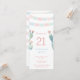 Un design d'invitation d'anniversaire d'inspiration mexicaine pour un anniversaire féminin. L'aménagement comprend des drapeaux de picado papel et des images de cactus pastel.