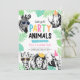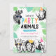 Une invitation amusante et moderne ! Comprend des couleurs vives, des animaux de la jungle ou du zoo, portant des chapeaux de fête et des lunettes de soleil. Personnalisez le texte modifiable et utilisez l'invitation pour votre événement rempli d'animaux !