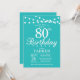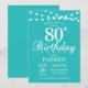 80e anniversaire Invitation avec lumière à cordes. Arrière - plan Turquoise Aqua Turquoise. 13e 15e 16e 18e 20e 21e 30e 40e 50e 60e 70e 80e 90e 100e, n'importe quel âge.
