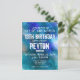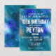 Carte postale d'invitation d'anniversaire aquarelle Galaxie Bleu Aqua. Idéal pour les garçons et les filles.